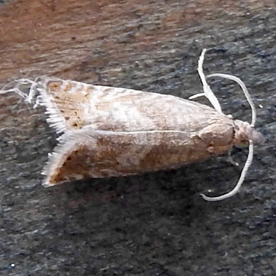 Small dull brown moth with an off-white triangular blotch with poorly defined anterior edge on its back. Like D. acuminata but with smaller triangular blotch. In light trap 20th June, 2025.