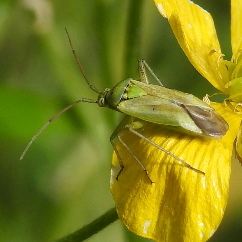 Small froghopper bug, ca. 6 mm in length, mature male (illustrated) with red-brown streaking on green wing cases and two black spots on pronotum. Wings brown, scutellum green. Antennae with second segment longer than next two combined. On Ox-eye daisy flowers 3rd July, 2024. On buttercup flower 16th June, 2025.