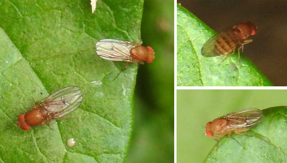 Small dipteran 3-4 mm in length with red eyes, plain orange thorax and brown/orange banded abdomen. Wings clear. Found in compost heap late July. Species identification requires detailed microscopy.