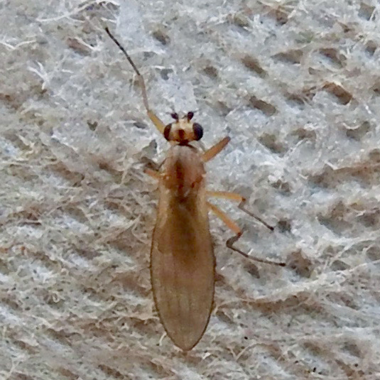 4-5 mm dipteran with distinctive spear-shaped wings with dark fringe. Species identification requires microscopy. Caught in moth light trap 7th November, 2025.