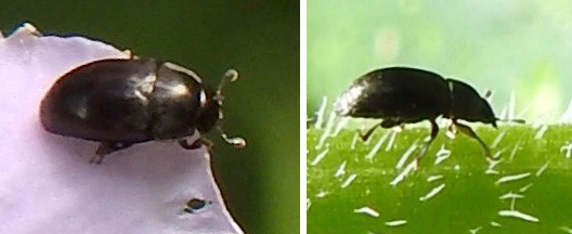 Tiny (2 mm) black beetle with flaired tip to antennae. Abundant in flower buds of Dames violet.