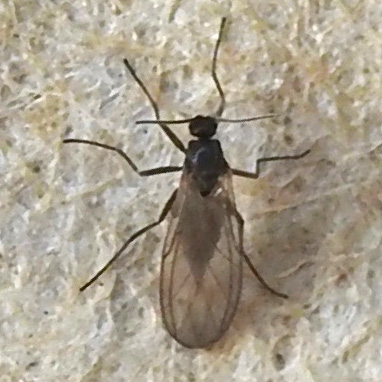 3-4 mm black dipteran with tapered abdomen and smoked wings. In moth light trap 7th November, 2025.