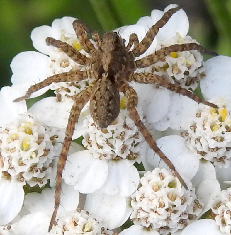 Large grey ground-hunting spider with prominent pale cardiac median band, swollen behind eyes and tapering posteriorly. Abdomen lateral lines dotted. Legs obviously banded. Microscropic examination required to confidently identify to species level.