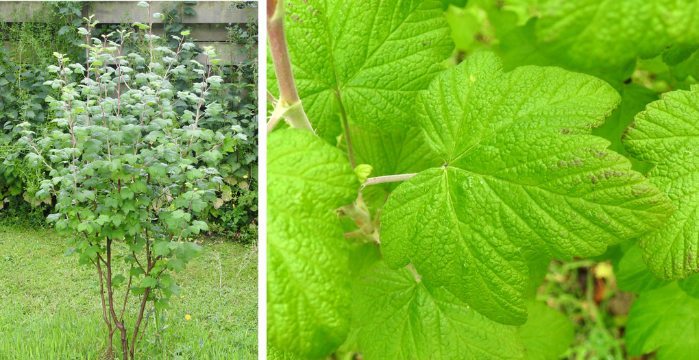 Small shrub with lobed leaves and racemes of red tubular flowers. Planted 2023.